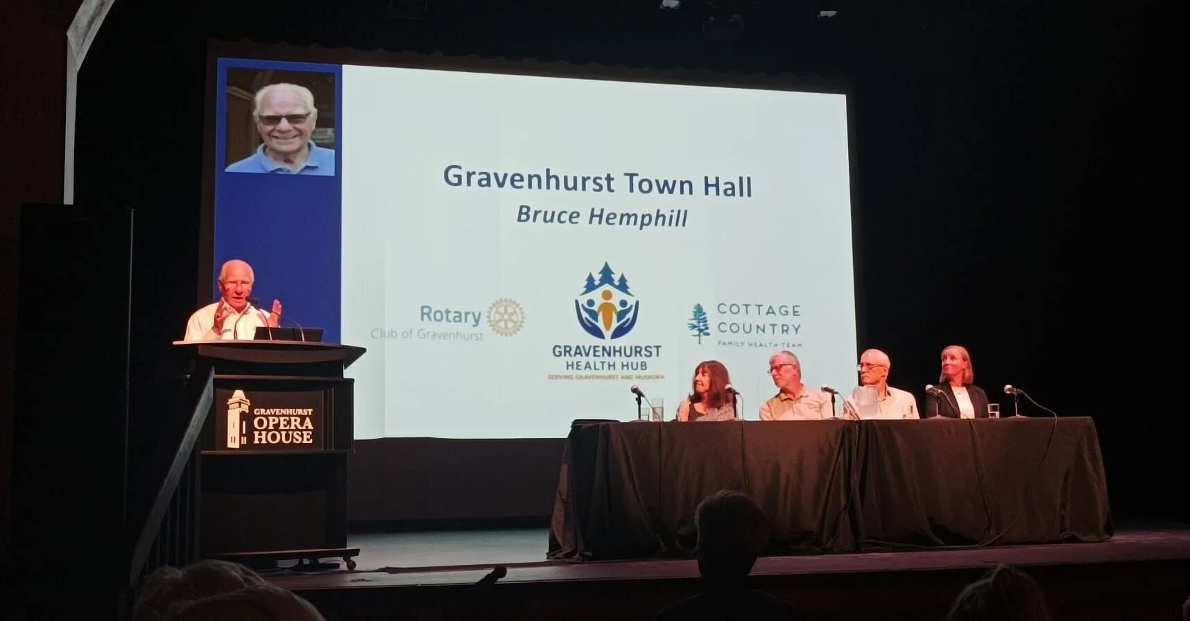The Rotary Club of Gravenhurst hosted a Town Hall meeting on July 16 at the Opera House to discuss the current healthcare situation and the future Health Hub in South Muskoka.
